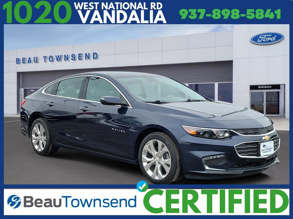 Blue Velvet Metallic 2017 Chevrolet Malibu Premier Certified. FWD 9-Speed Automatic 2.0L 4-Cylinder DGI DOHC VVT Turbocharged Dark Atmosphere/Medium Ash Gray Leather.