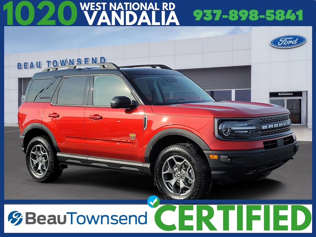 Chili Pepper Red 2023 Ford Bronco Sport Badlands Certified. 4WD 8-Speed Automatic EcoBoost 2.0L I4 GTDi DOHC Turbocharged VCT
