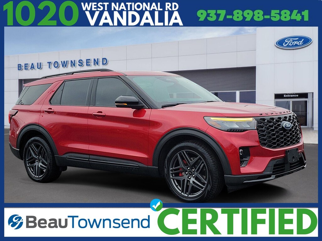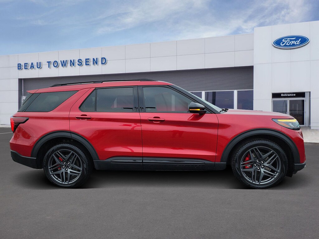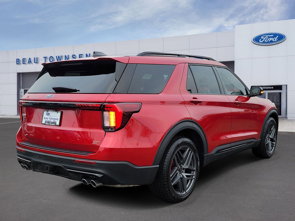 Red Metallic 2025 Ford Explorer ST Certified. 4WD 10-Speed Automatic 3.0L EcoBoost V6 4WD.